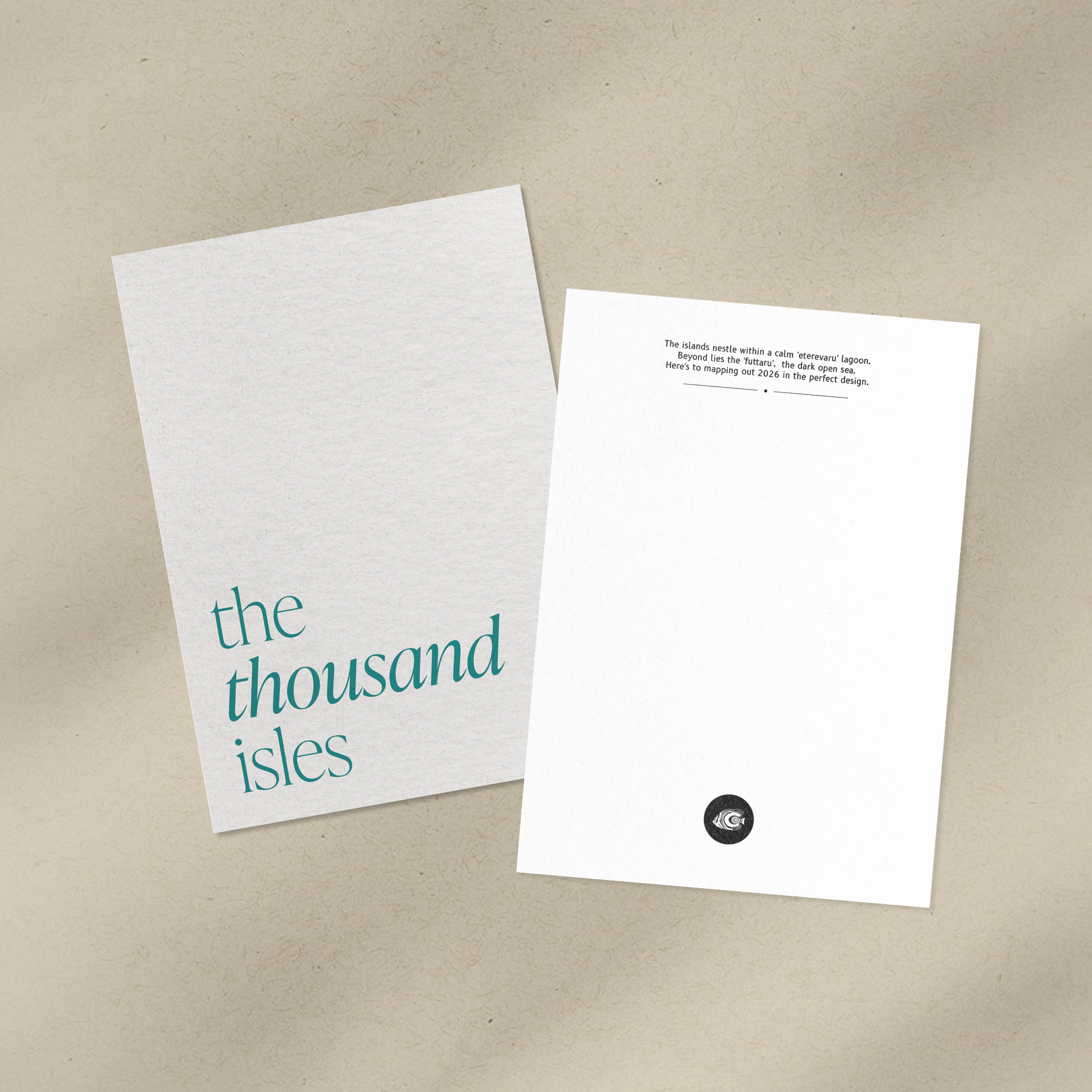 The islands nestle within a calm 'eterevaru' lagoon. Beyond lies the 'futtaru', the dark open sea. Here's to mapping out 2026 in the perfect design.