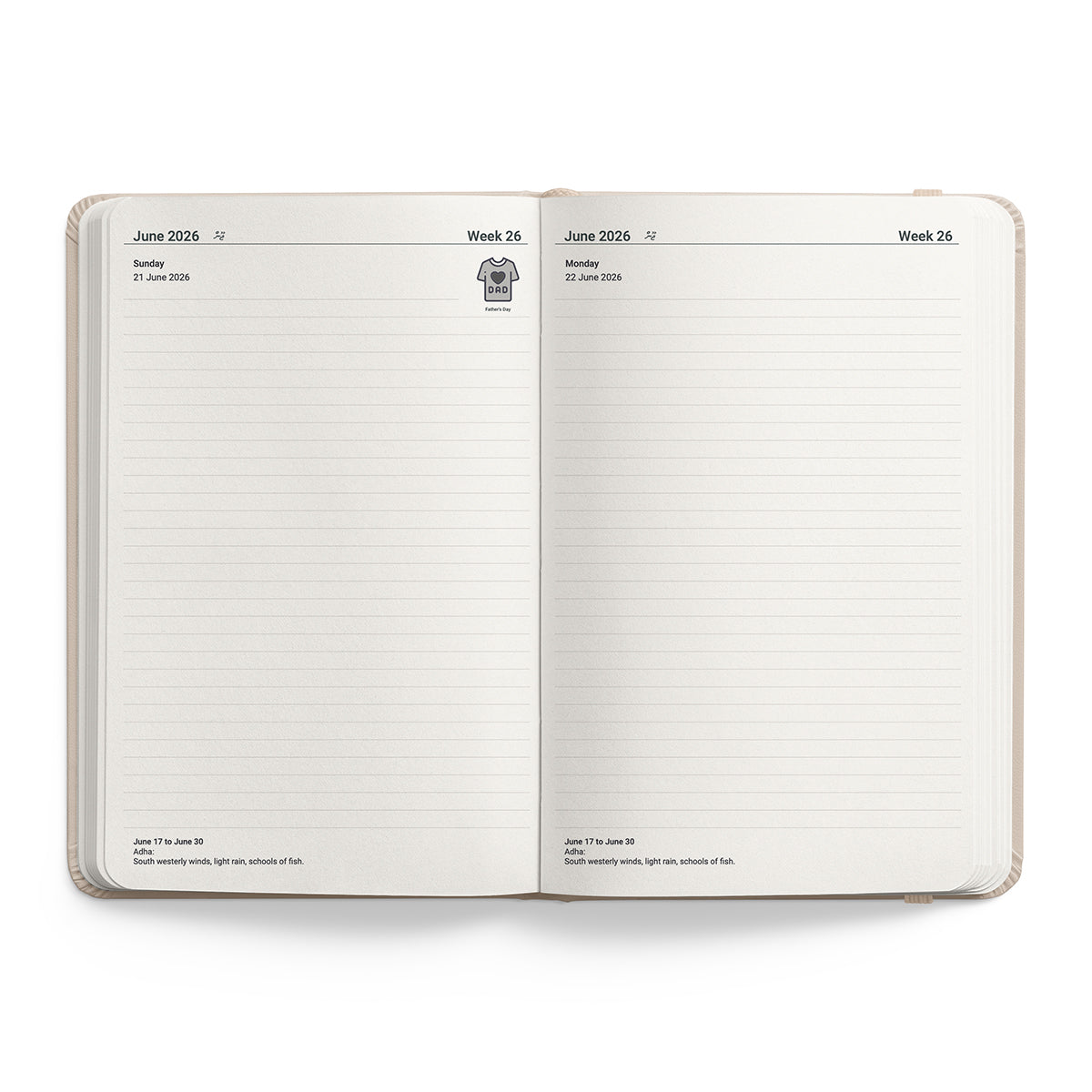 Our 2026 Planner's layout is designed with simplicity and minimalism in mind. With user-centered introductory pages, featuring local holidays, selected international celebrations and the Maldivian Nakaiy Calendar, the 2026 Planner comes with your favorite yearly, monthly and weekly layouts.