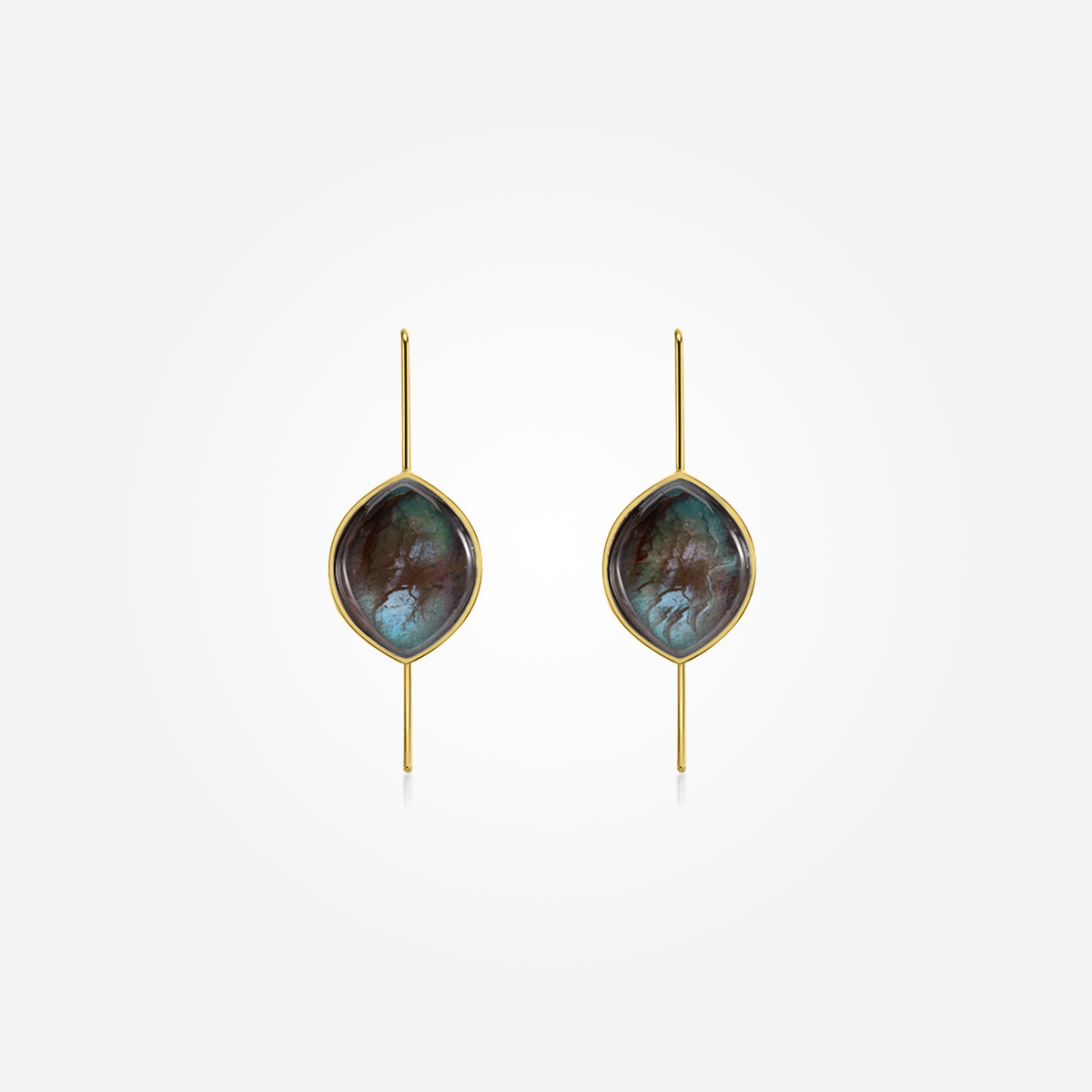 Gaia Stone Earrings offer timeless glamour with its exquisite natural marquis-cut stones. With a sleek threader silhouette in both classic and curved styles, and stunning detail on the feature stones, these earrings dangle elegantly. From regal blues to soft opals, Gaia Stone Earrings are a beautiful choice for your jewelry box, or for a meaningful gift forever treasured.
