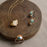 GAIA — Inspired by the allure of nature and the hues of the islands, the Gaia Stone Collection features stunning ethically-sourced semi-precious stones inset in stainless steel coated with 18k Gold, 18k Rose gold and polished silver finishes. Each piece in this collection is a unique and one of a kind piece of stone art.