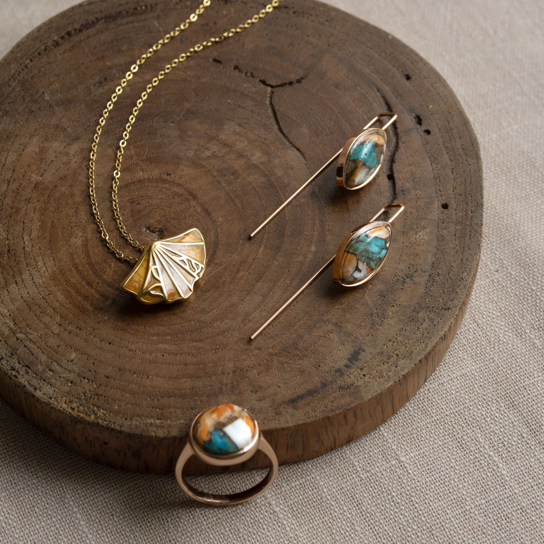 A gorgeous scape of contrasting teals and oranges, with veins of copper, Turquoise, Oyster & Copper takes us back to ancient journeys and the beauty of nature.