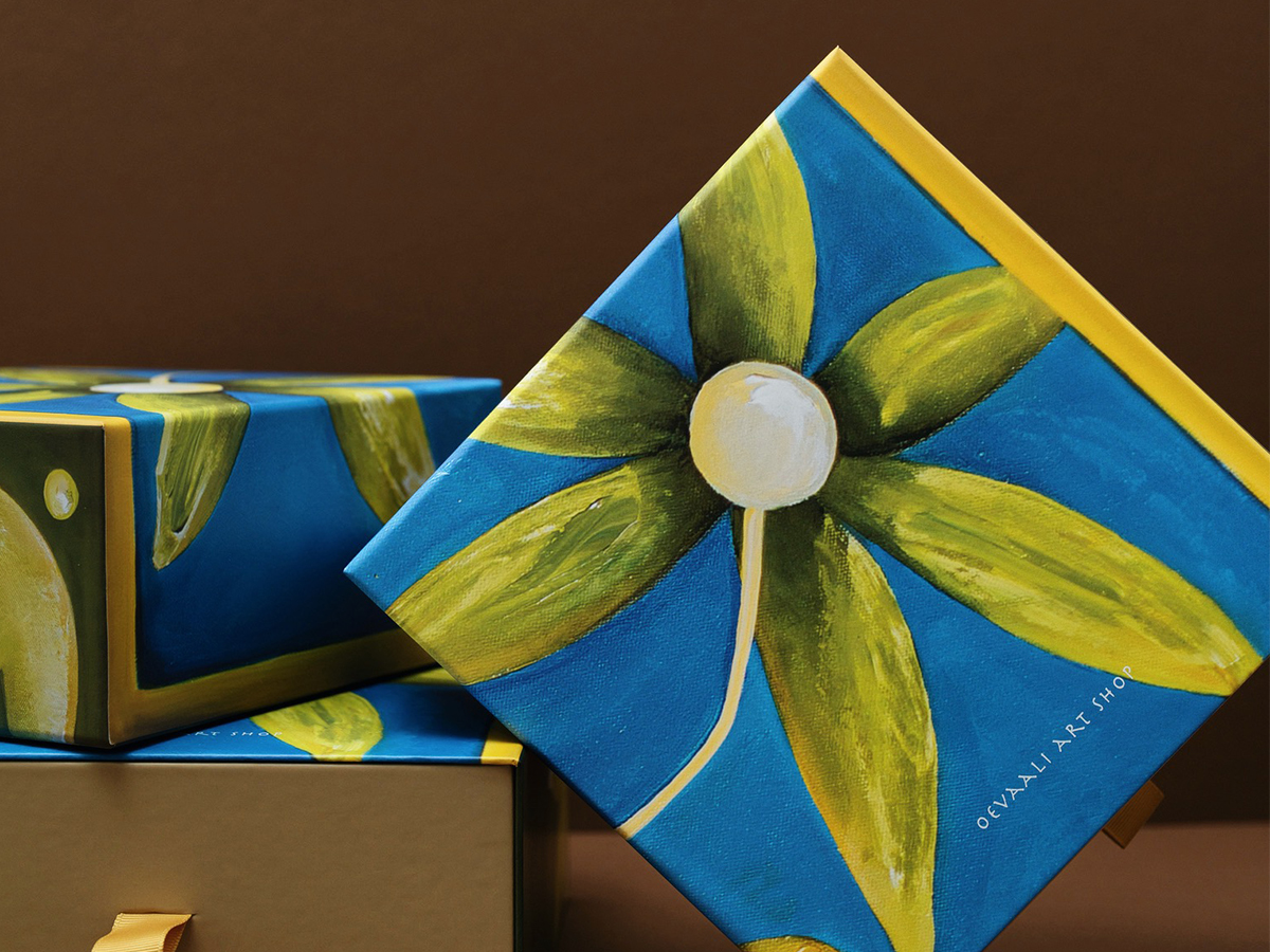 The Jasmine Art Box is a story of strength and softness: of being rooted yet always rising. Inspired by the original ‘Jasmine’ painting by Raniya Mansoor, where vivid ultramarine blooms reflect womanhood, belonging, and becoming, this curation gathers pieces that share its spirit: graceful, grounded, and powerful.