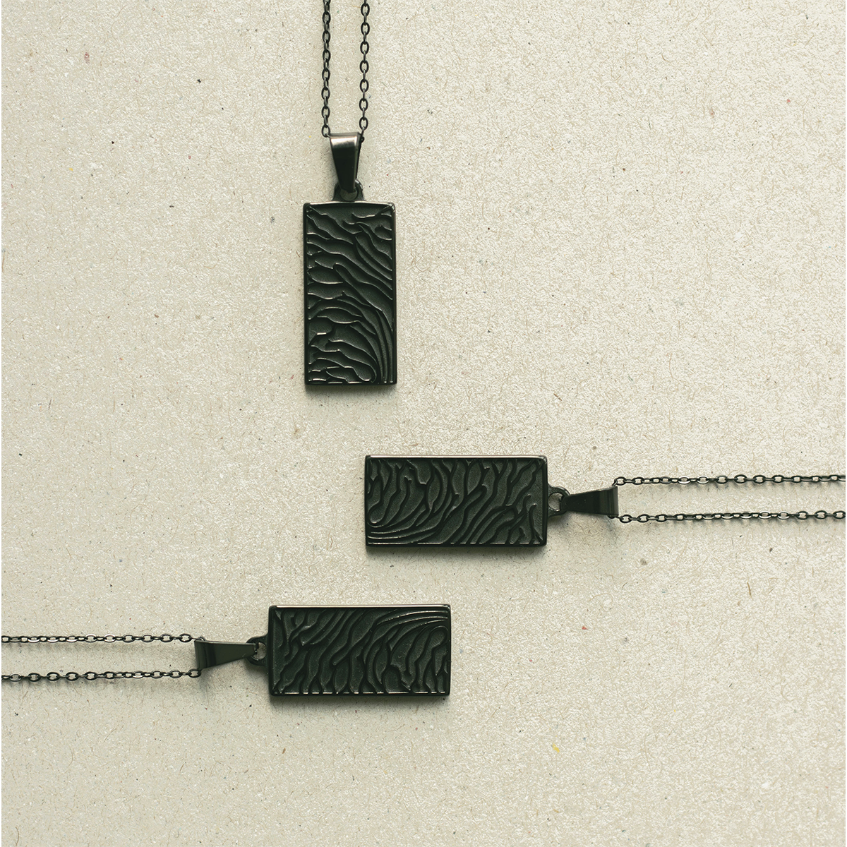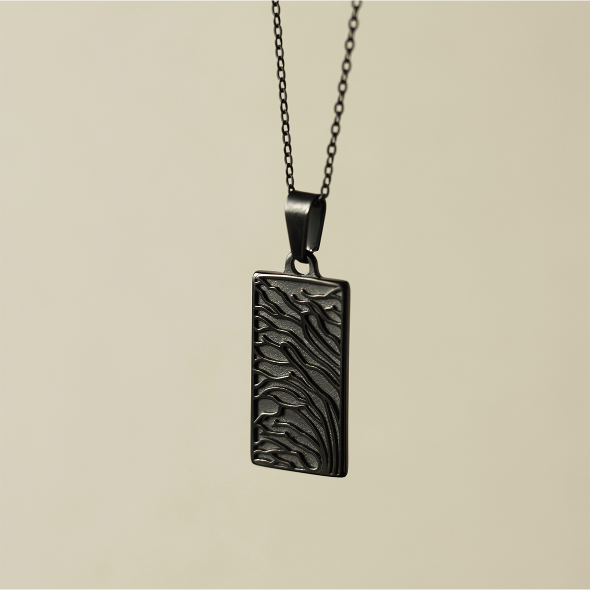 The Black Coral Pendant draws from this imagery: a coral that stands like a majestic black tree at the end of the ocean, where water rushes past and depth turns infinite.
