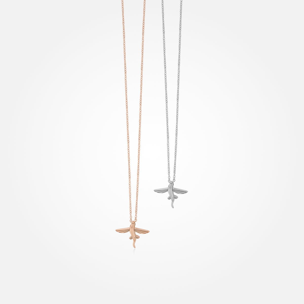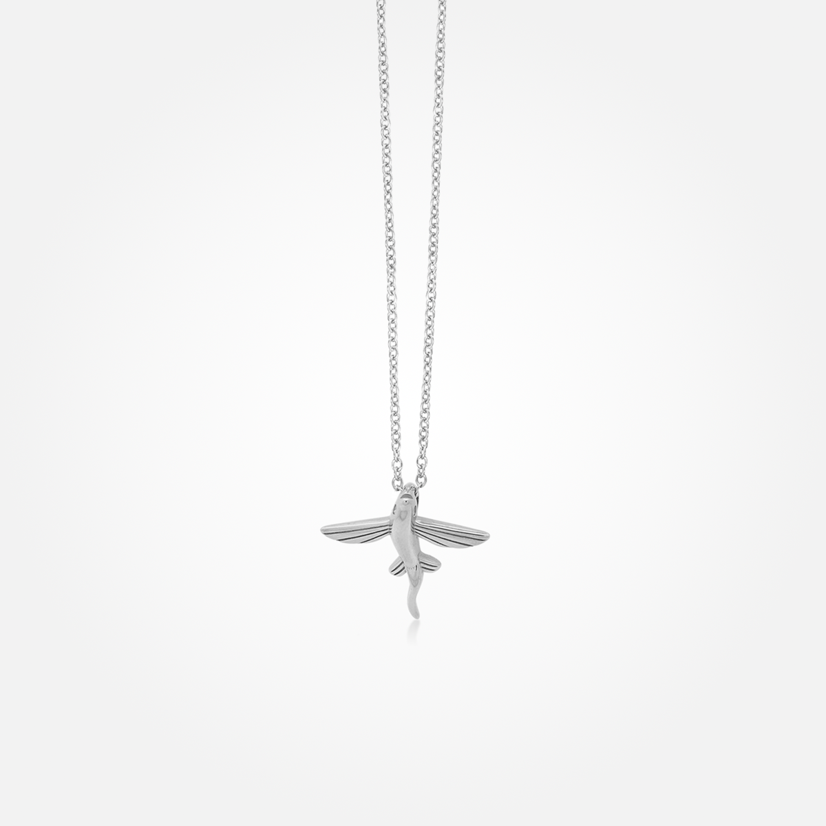 The Flying Fish pendant is inspired by these amazing creatures in full flight. From our range of SS Pendants, this delicate yet sleek design immortalises the beauty of a flying fish as it glides over the waves, ever so slightly touching the surface.