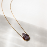 Delicate pieces making strong statements, the Gaia Stone Necklaces come in an exquisite selection of round, marquis and teardrop cut natural stones. Modern design and timeless elegance come together in these pendants, creating a stunning center piece to any look. A single natural stone is framed delicately and suspended from a link chain.
