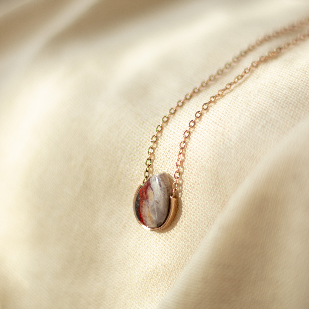 GAIA — Inspired by the allure of nature and the hues of the islands, the Gaia Stone Collection features stunning ethically-sourced semi-precious stones inset in stainless steel coated with 18k Gold, 18k Rose gold and polished silver finishes. Each piece in this collection is a unique and one of a kind piece of stone art.