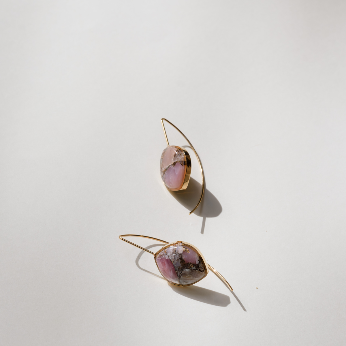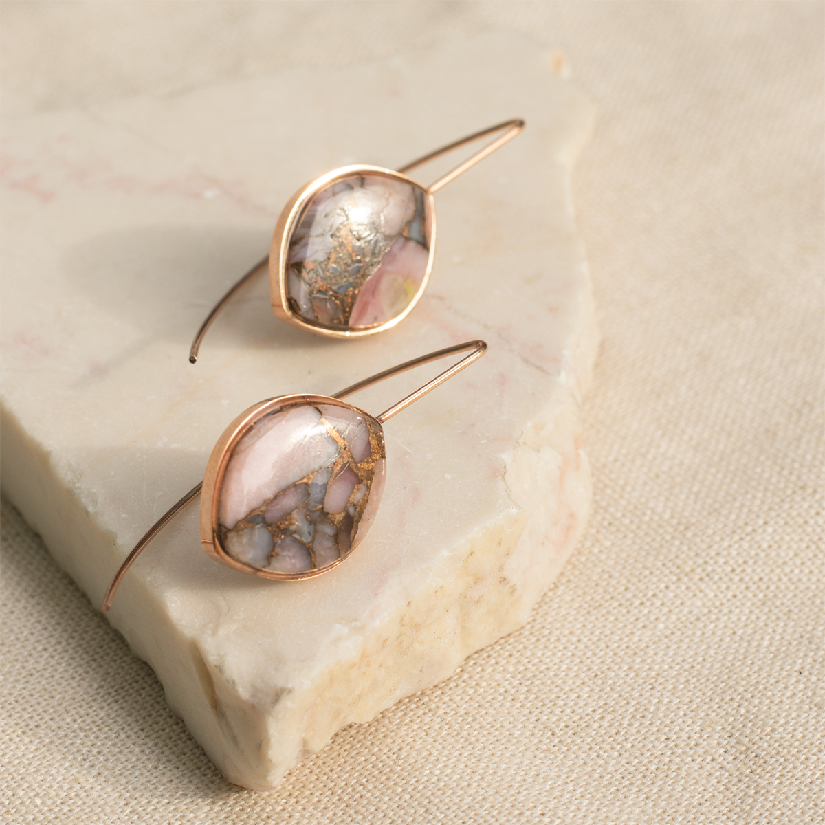 Pink Opal Copper Stone Earrings (Curved)